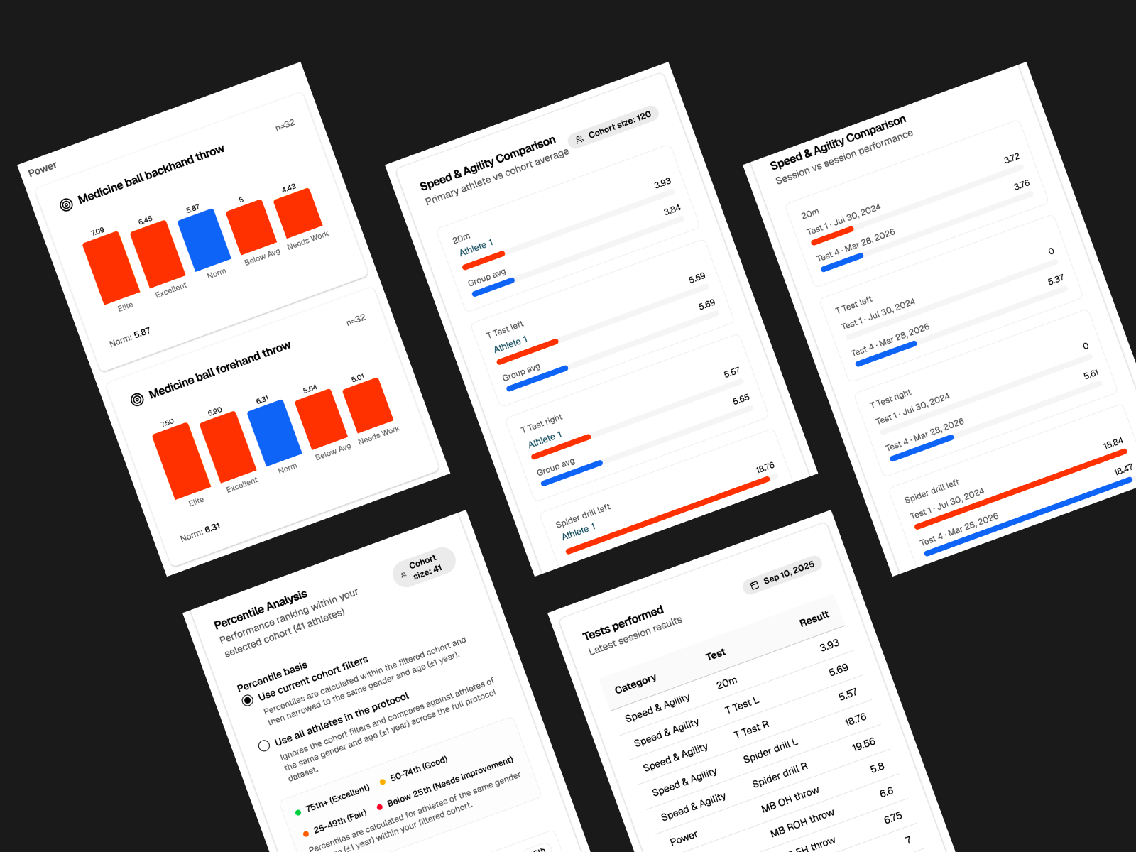 Comprehensive fitness testing and advanced analytics to evaluate and compare athletic performance.