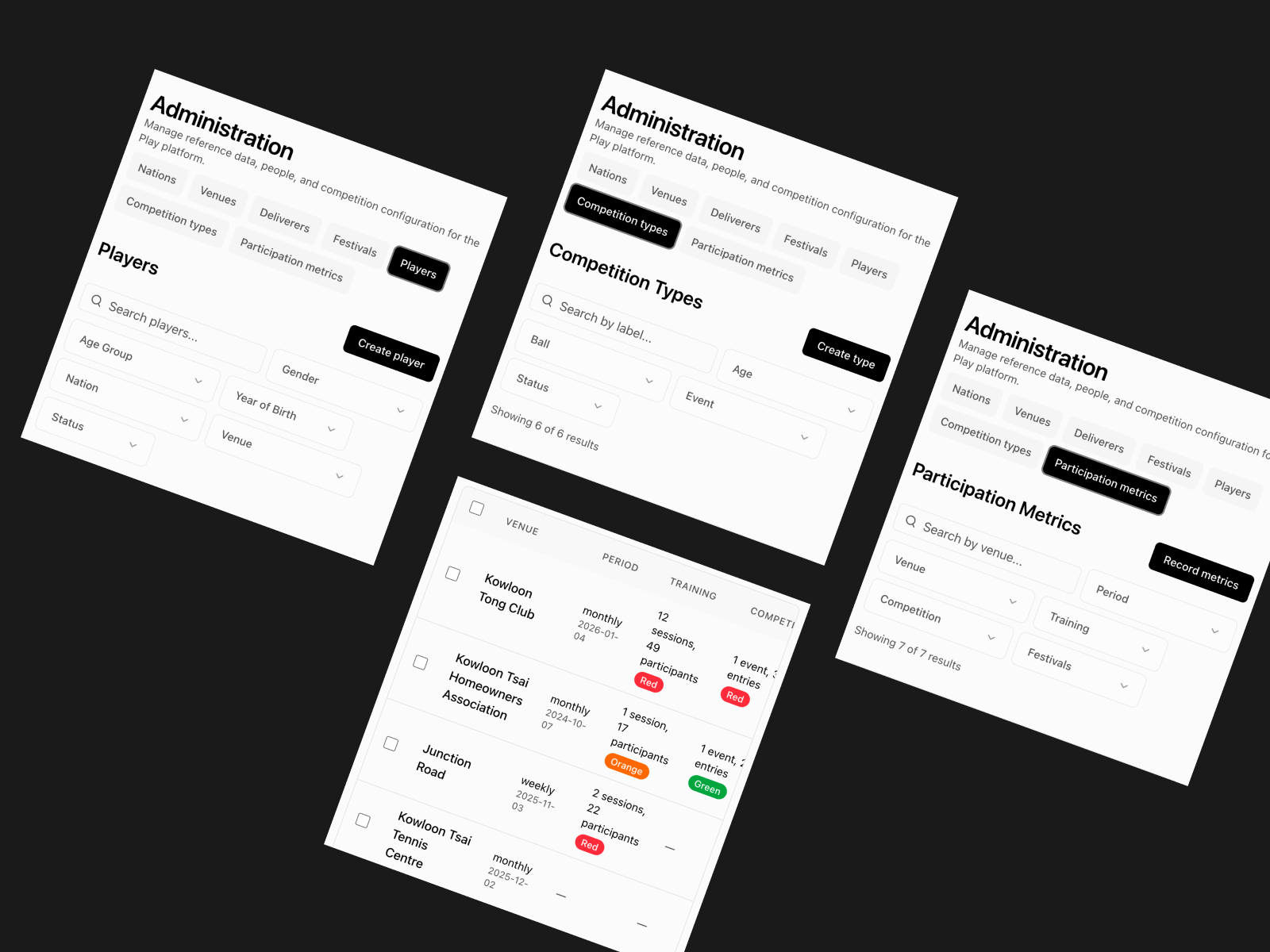 Track every aspect of an athlete/player with participation metrics. Perfect for Federations, clubs or Academies.